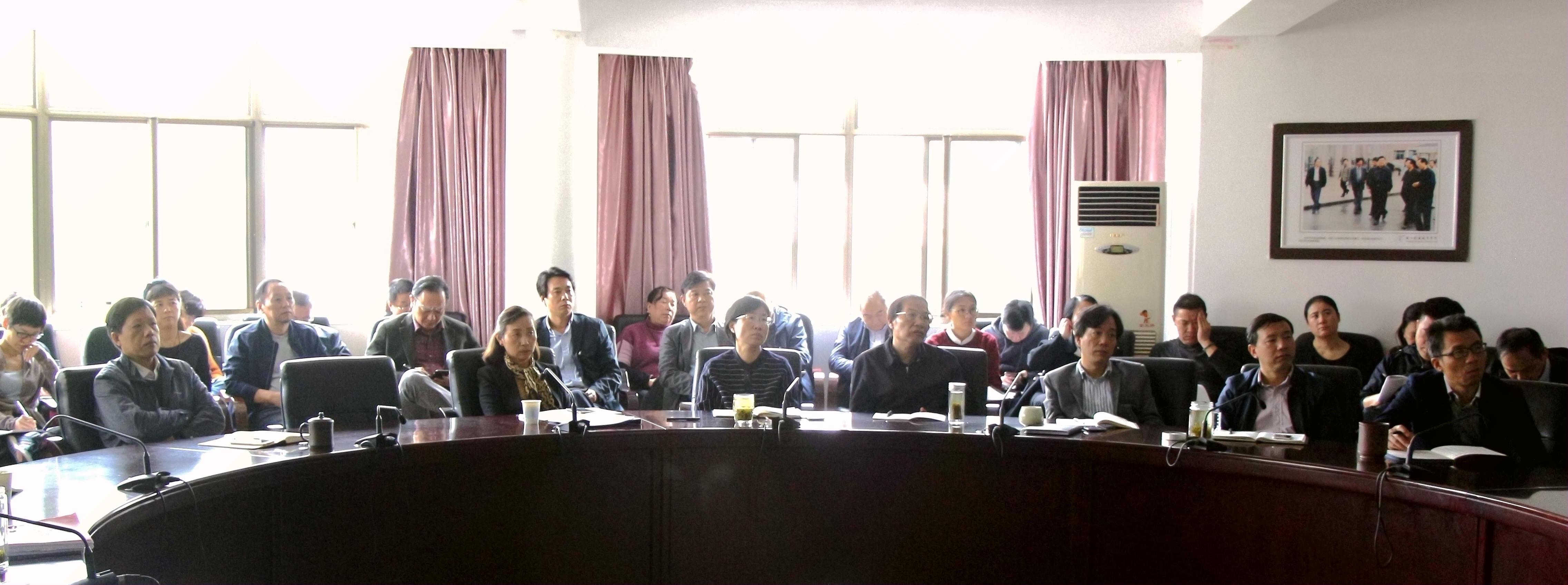 在毛泽东同志发表《实践论》《矛盾论》80周年之际,习近平总书记对广大党员干部学习研究经典著作、发扬我们党学哲学用哲学传统作出重要指示。根据省委教育工委、省文化厅直属机关党委要求,10月18日下午,校党委召开党委理论学习中心组2017年第16次扩大学习会。学校党委班子成员朱海闵、黄杭娟、章轲、沈恒、夏开堂、徐芳、沈军甫,副处以上干部、团委书记、思政理论课教师等近70人参加学习,朱海闵主持会议。
