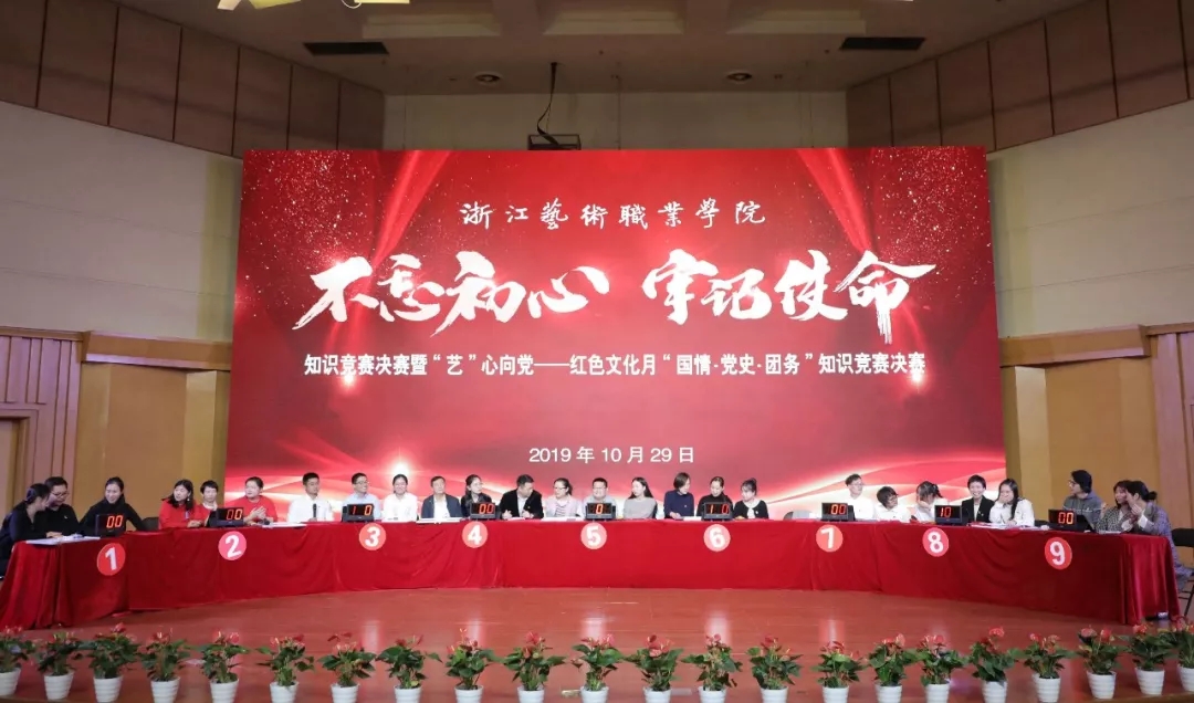 “不忘初心、牢记使命”主题教育开展以来,按照学校主题教育工作安排,举办读书班、专题讲座、现场教学、集中自学、理论中心组研讨、调研成果交流会、党组织书记上党课等多种形式,切实加强了我校全体党员的理论学习。为巩固主题教育成果,进一步推动学习贯彻习近平新时代中国特色社会主义思想往深里走、往心里走、往实里走,1029日下午,学校举办了“不忘初心、牢记使命”主题教育知识竞赛决赛暨“艺”心向党——红色文化月“国情·党史·团务”知识竞赛决赛,校属各党总支、直属党支部组成9个代表队现场竞技。校党委班子成员、全体处科级干部、全体党员和部分入党积极分子代表观看了比赛。