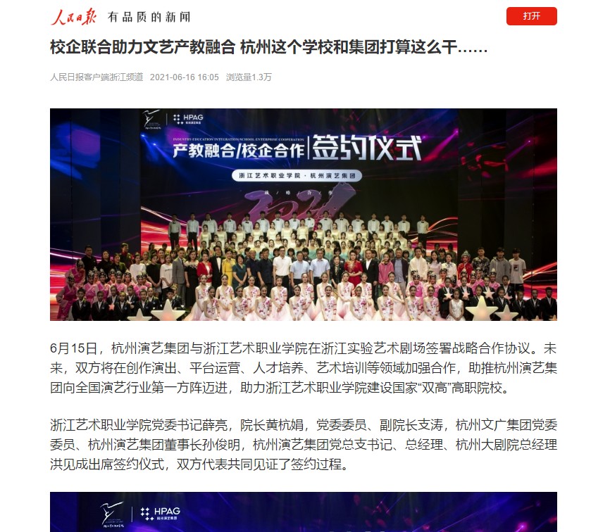 人民日报:校企联合助力文艺产教融合 杭州这个学校和集团打算这么干……