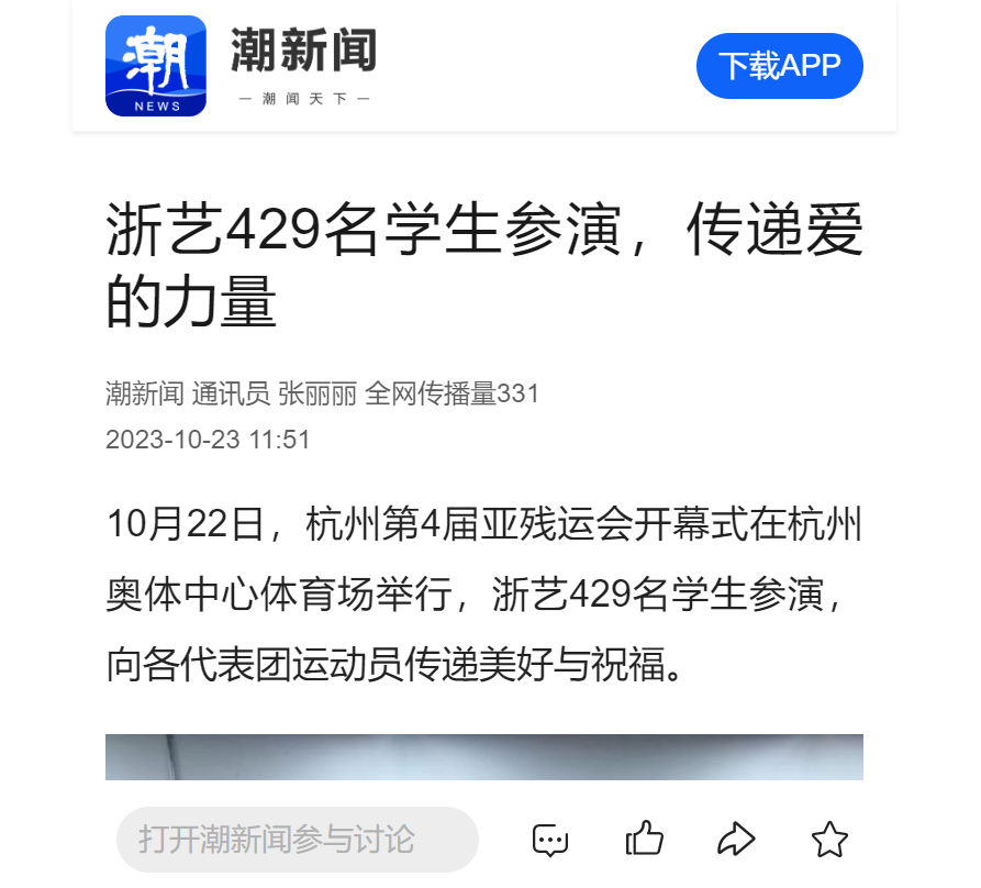潮新闻:浙艺429名学生参演,传递爱的力量