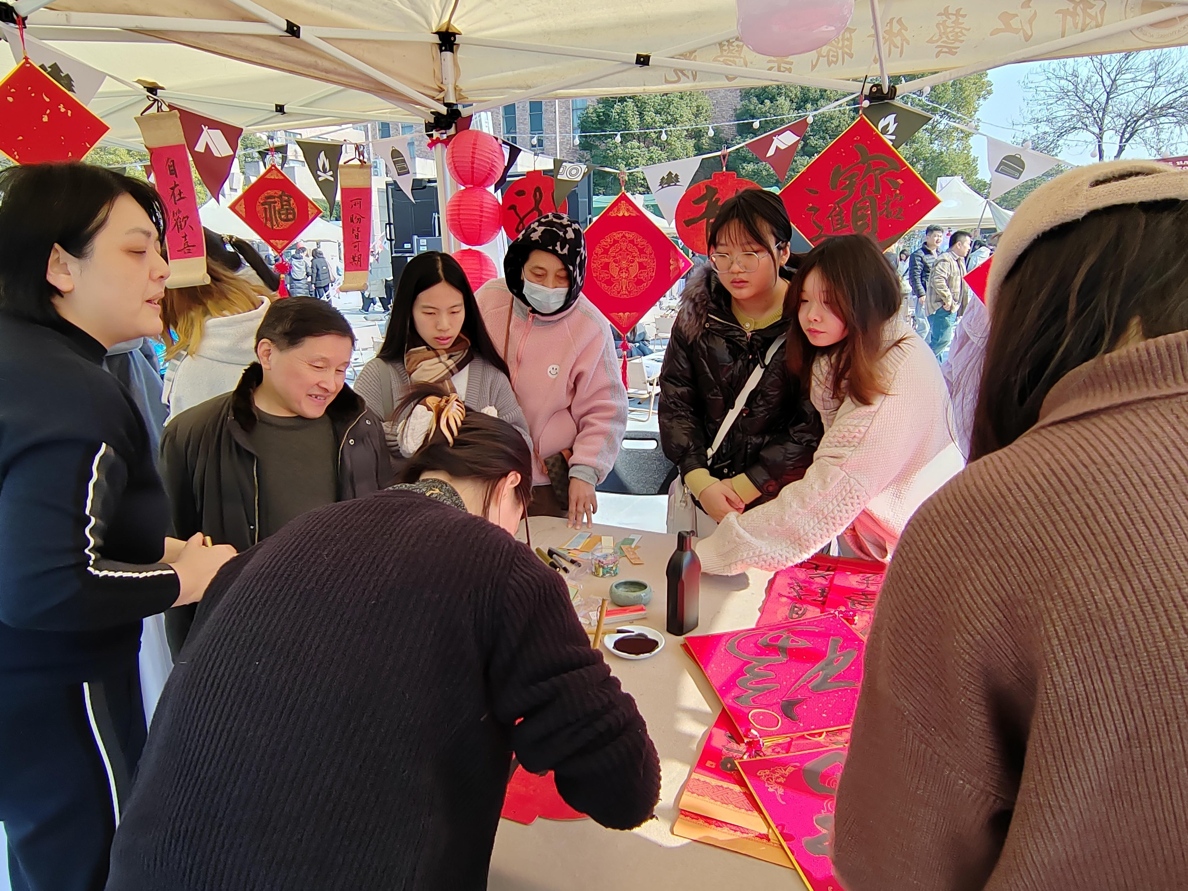 活动现场特邀自然造物、田博匠新、文博公司等非遗企业参与,摊位上非遗手工艺品琳琅满目,引得不少老师、同学驻足观赏。