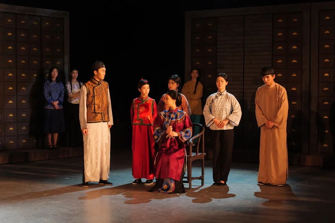 话剧《大宅门》围绕一块“百草厅白家老号”的牌匾展开,再现了医药世家白府的百年变迁,映射出时代的沧桑巨变。学生们通过表演,塑造出剧中诸多有血有肉、鲜活立体的人物:大半生游手好闲、最后看透世道的白景琦,临危受命、振兴家族的二奶奶白文氏,身世悲苦的杨九红,机智伶俐的贫家丫头李香秀……