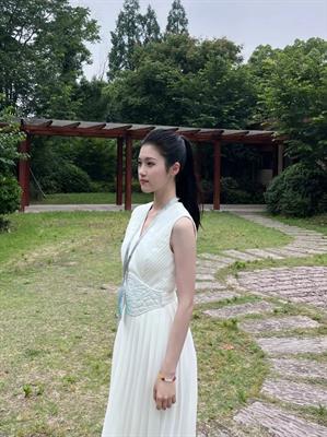 6月15日9时18分许,何伊如身着白色长裙,长裙的材质为丝绸,与良渚文明贵族衣物的材质相同,长裙腰部收束,图案为良渚文明的高级宗教象征——神人神兽徽记,项链配饰的造型以良渚玉璜为原型,她说:“身着充满中华传统文化元素的服饰,神圣感和光荣感油然而生,日后我会一直带着这份荣光,将其融入自己的学习和生活中。”