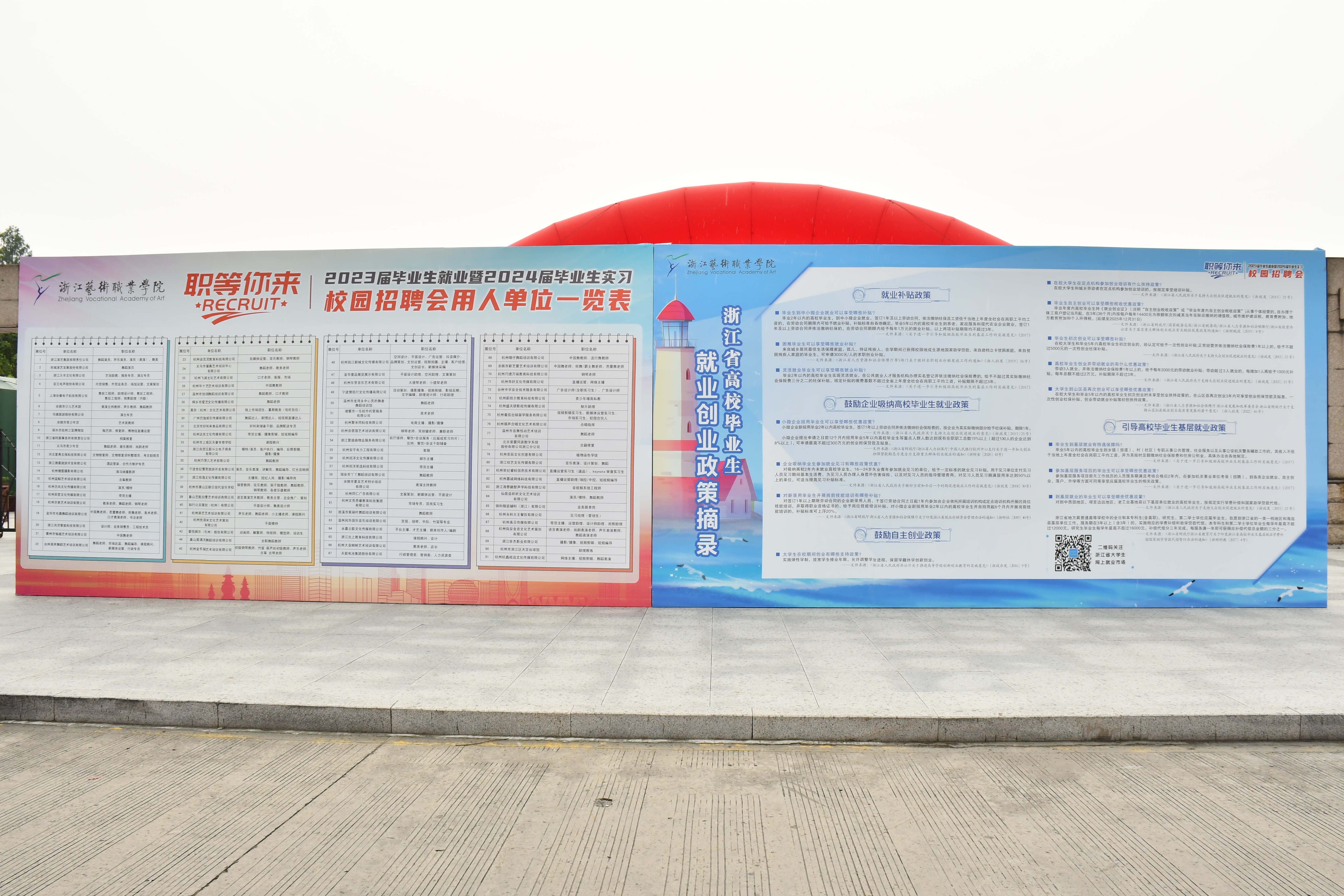 根据专业特色和行业需求,本次招聘会共吸引了浙江演艺集团有限责任公司、宋城演艺发展股份有限公司、音王电声股份有限公司、浙江大丰文化有限公司、余姚市少儿艺术团、乌镇旅游股份有限公司、余姚市青少年宫、丽水市处州三宝博物馆、浙江省档案事务所有限责任公司、浙江德晨旅游开发有限公司等92家企业,为毕业生们提供了2000多个岗位。招聘需求覆盖毕业班级所有专业,匹配度较高。