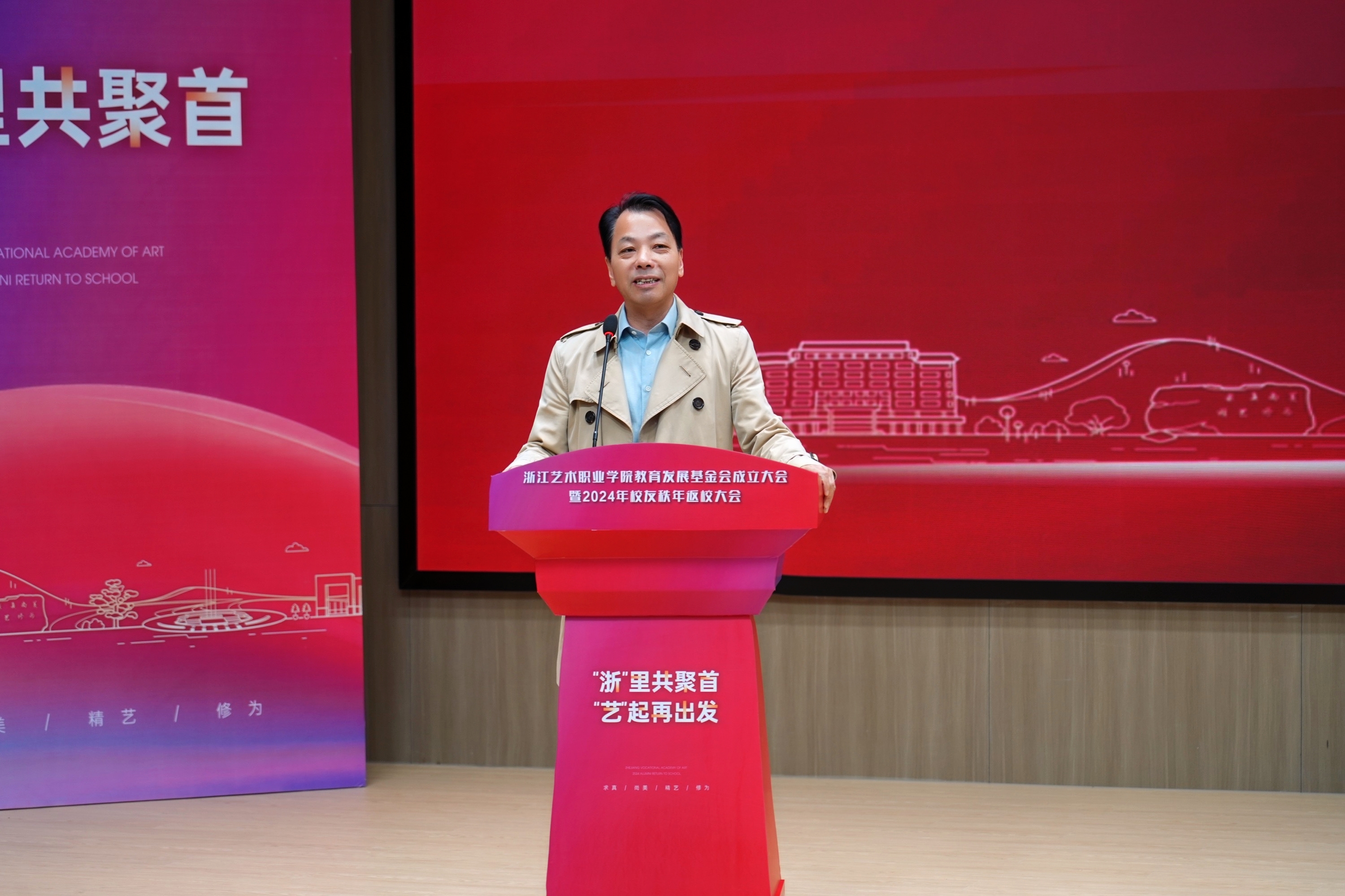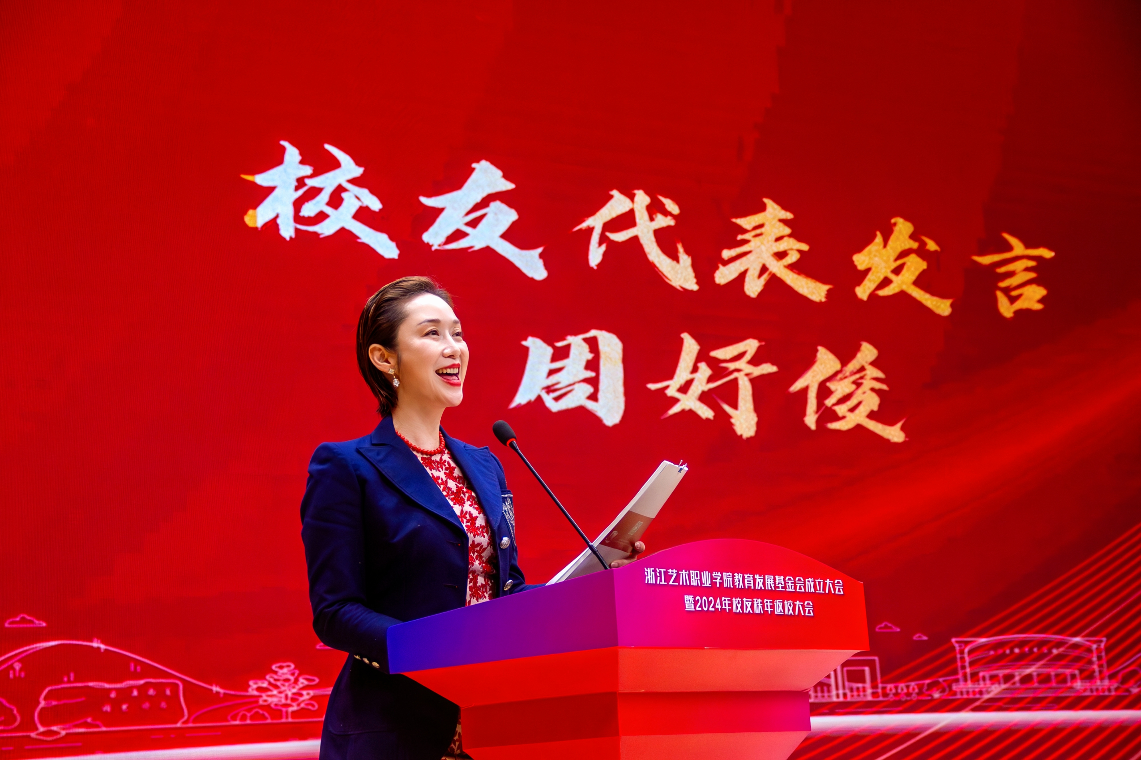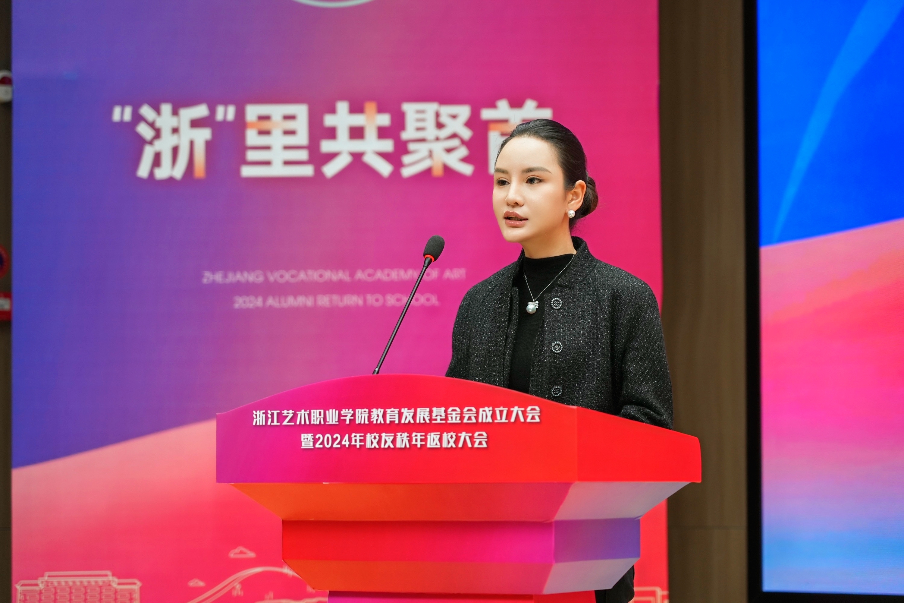 薛亮在致辞中表示,学校今时之风貌离不开一代代浙艺人的接续奋进,浙艺教育发展基金会的成立获得各方大力支持,让我们深切感受到企业对于学校艺术教育事业发展的关心以及各位校友对母校的拳拳赤子心。学校定会不负所望,集各界力量,在高质量发展的征程中打响文化艺术职业教育的“浙艺品牌”。