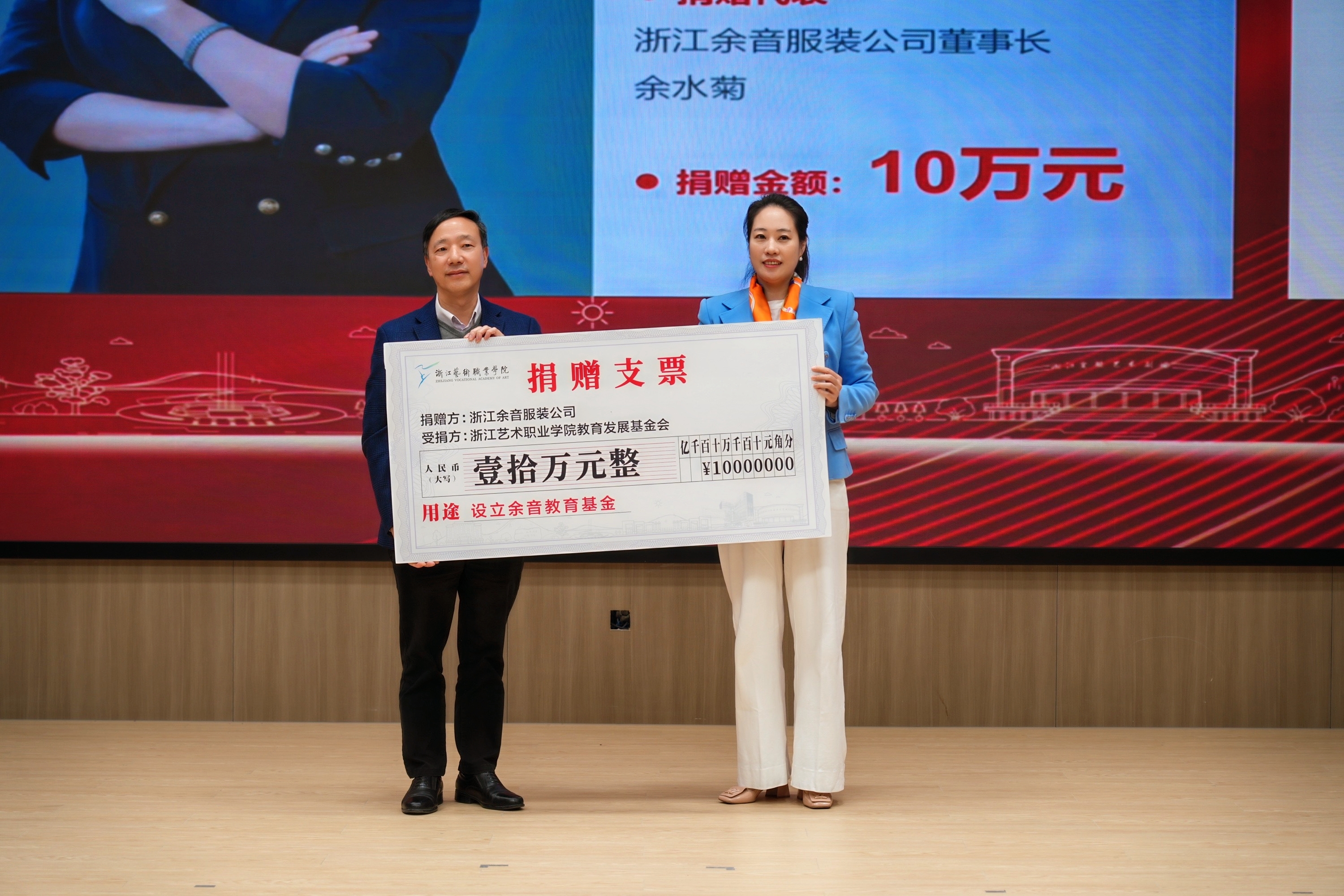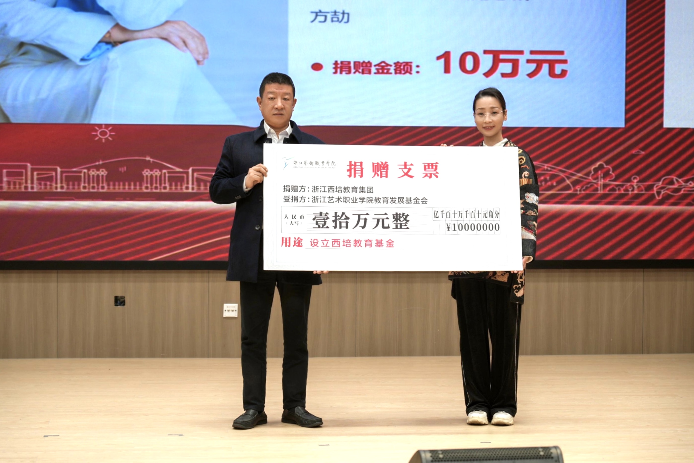 校友和企业代表上台捐赠
