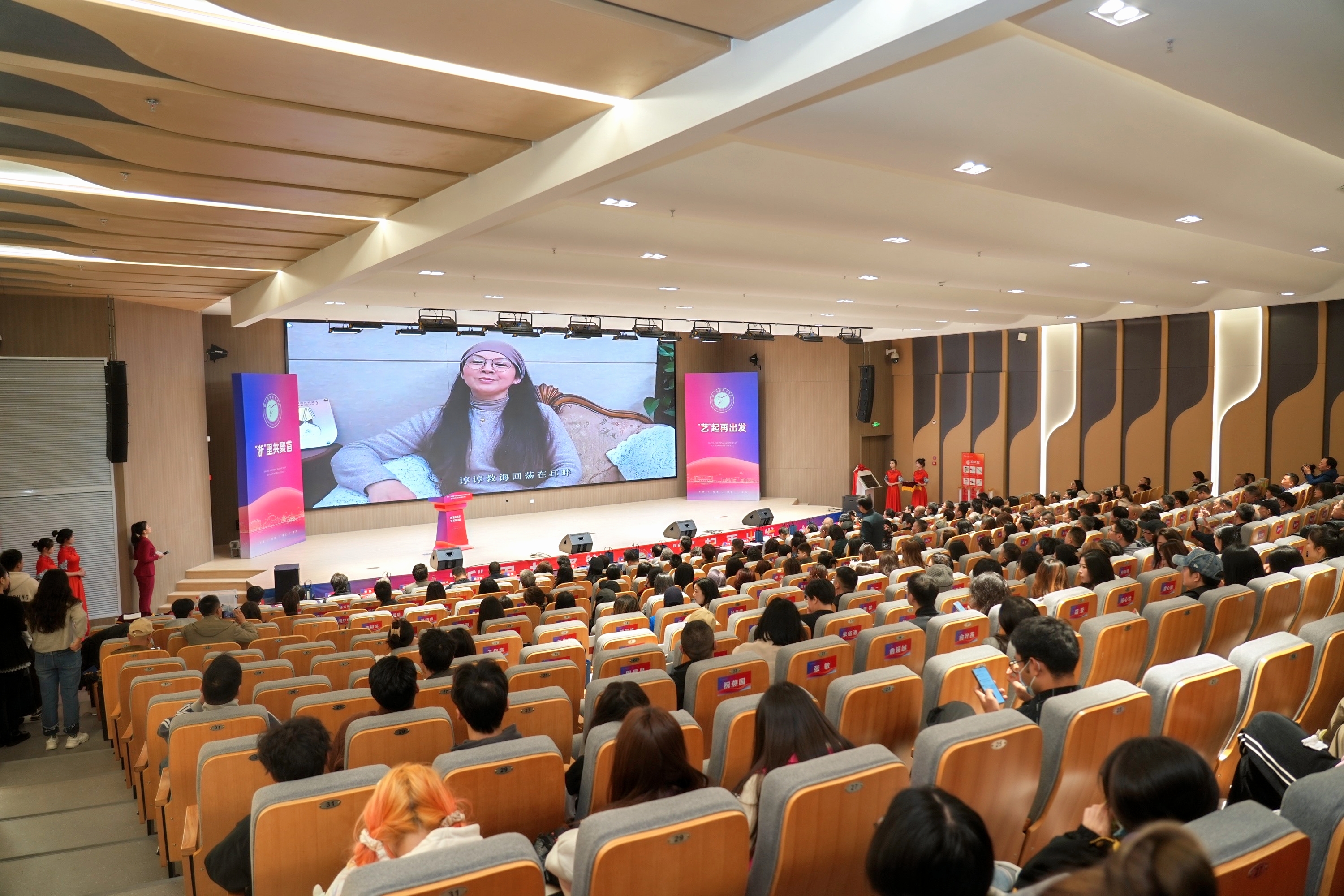 大会上,各二级学院负责人为校友代表佩戴校徽,此举不仅令校友深切感受到母校的温情与殊荣,更让浙艺的精神内涵与文化传承在每位校友心中牢固扎根。