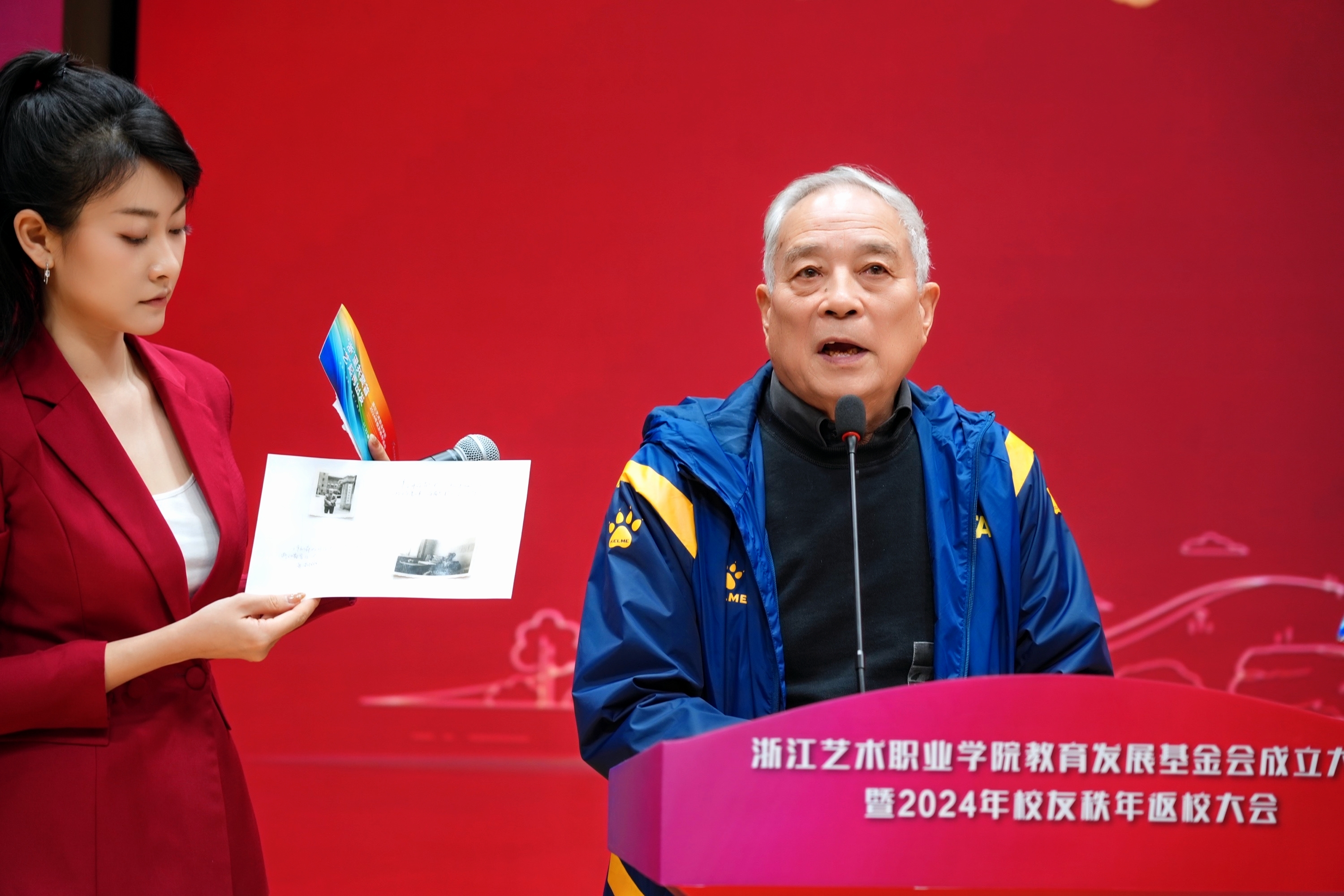 徐天赐、侯淇玮、吴祖康、李昊四位校友代表上台捐赠了珍贵校史史料及文物,并分享了这些物品背后的故事,展现了浙艺深厚文化底蕴和校友们对母校真切的情谊。