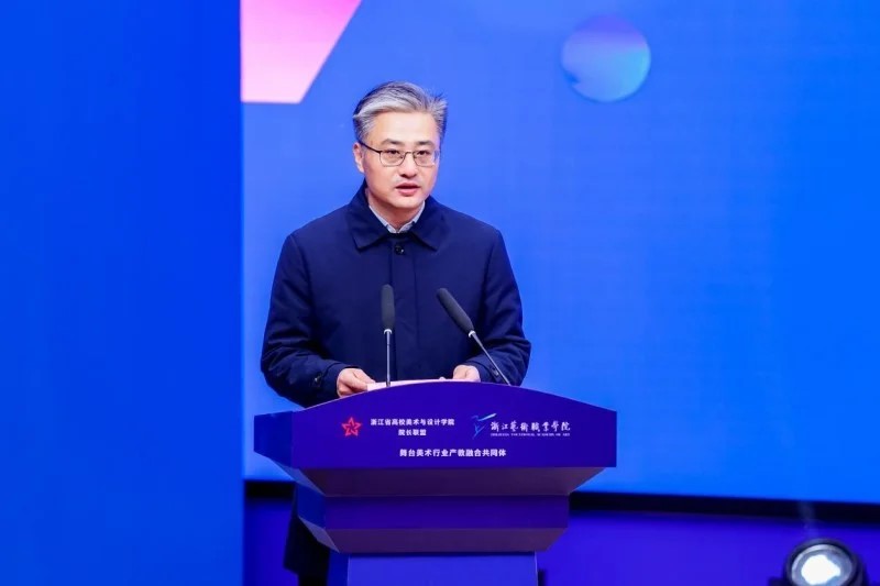 施俊天指出,随着社会对艺术和设计人才需求的日益多元化,产教融合已经成为推动高校美术与设计教育发展的重要途径,把握在新领域新赛道弯道超车的战略机遇,就必须在产教融合中不断丰富高等教育的新内涵。本次论坛围绕三个聚焦:一是聚焦四链贯通,教育链、产业链、人才链和创新链;二是聚焦四个合作,合作办学、合作育人、合作就业、合作发展,实现产业、专业、就业三联动;三是聚焦四景运通,产学场景联通,产研场景畅通,产训场景贯通,产创场景融通。希望通过这次论坛,进一步深化省内美术与设计教育领域的交流合作,进一步强化资源共享、优势互补、协同创新,为浙江省乃至全国高校美术与设计教育的发展做出更大的贡献。
