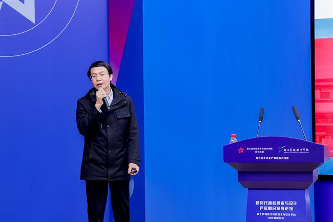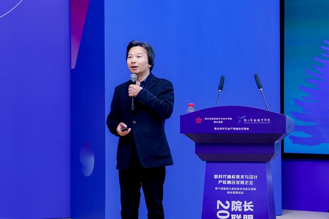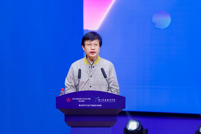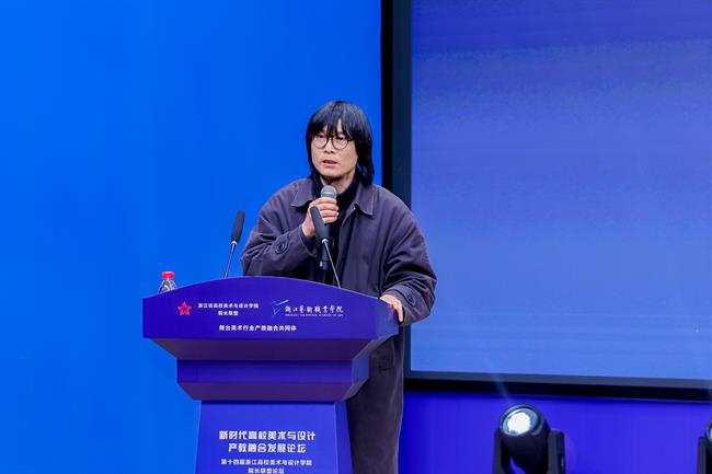浙江省高校美术与设计学院院长联盟秘书长、浙江万里学院教授周斌作联盟工作报告,他从宗旨理念、会议活动、联盟提升、增设力量4个方面提出论坛共赢议题。联盟创建人之一、绍兴文理学院教授、高等美术教育学会产教融合工作委员会主任陈浩回顾了联盟成立之初凝聚共识的艰辛历程,希望依托联盟平台,整合信息,打通渠道,扩大影响力,努力实现联盟的发展目标。