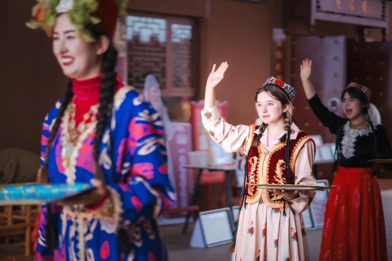 演出中,“封赏宴宾”“使节来朝”“破敌擒匈”“和谐欢歌”等精彩纷呈的章节依次上演,每一幕都蕴含着强烈的戏剧张力和视觉冲击,使观众仿佛置身于历史的长河之中,感受着那份厚重的历史感。其中“巴依老爷娶亲”的喜庆场景,更是让观众在欢笑与泪水中,深刻体会到了民族和谐共处的美好愿景。“龟兹乐舞”环节,则生动展现了西域多元文化的和谐共生,让观众在欣赏中深刻感受到了中华文化的博大精深与包容并蓄。演出在陈汤将军与夫人携手共望未来的温馨画面中达到高潮,那份对国家的忠诚与对和平生活的深切向往,深深触动了每一位观众的心弦。