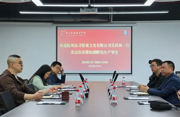 那刚介绍了戏剧影视学院基本情况及产教融合概况。戏剧影视学院依托 “两系一中心”架构,形成 “教学—实践—创作”一体化培养模式。近年来产出多部优秀作品,其中献礼第40个教师节系列微电影《我爱我的老师》获浙江省教育厅高度认可。“我们不仅要打造艺术精品,更要通过项目反哺教学,完善人才培养方案。”那刚说。此次合作项目将聚焦 “立德树人”,通过真实创作锤炼学生实战能力,同时探索“校政企” 三方联合出品模式,实现荣誉共享与市场化运营平衡。